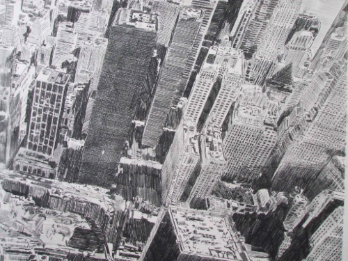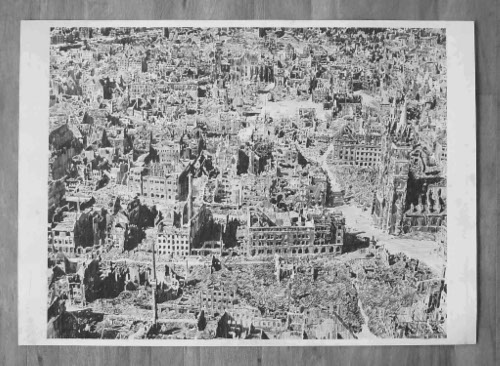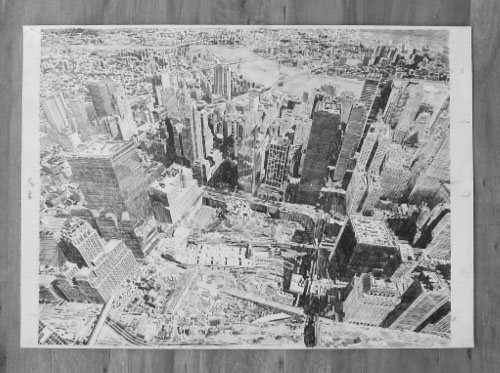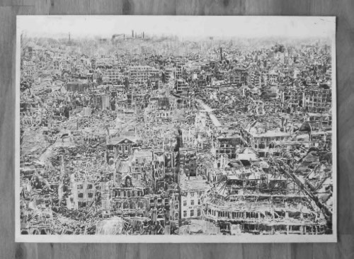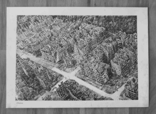 Series of Offset Carbon Drawings and Paintings about cities that have gone through the trauma of bombing.